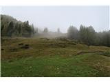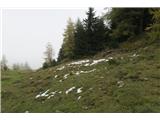 Bom kar tule napisal par besed, kaj bi novo temo odpiral. Začel sem na parkirišču, brezplačnem seveda, nekje na začetku doline. Potem pa proti koči Gortani in nekaj pred njo naravnost gor. Skozi gozd do gozdne ceste, po njej desno do Ex Villaggio Cocco, nekaj višje naprej stik s potjo, ki pripelje gor od Gamsa (Osteria del Camoscio). Vreme skladno z napovedmi, oblačno, tu pa tam megleno, dokaj toplo. Občutek, da bo sonce zmoglo oblake, me je spremljal vse do vrha in tam, a se je to zgodilo šele tekom sestopa. Tega sem opravil po drugi strani, na sedelcu med Lepim Vršičem in Kokom sem zavil levo, gledano sestopajoč, in vse od razpotja do ceste na prevalu Col di Mezzo brodil bo blatu. Pravo močvirje, radi katerega sem v gozdu, kjer je obilo podrtega drevja, "izgubil" stezico, zato sem si nekaj malega pomagal z zemljevidom, da sem udel nadaljevanje. Ko sem bil enkrat na cesti je bilo vse hudo za menoj, to je, blata sem se rešil in izgubiti se nisem mogel več, vrh vsega je posijalo sončece, skoraj žvižgajoč radi vsega lepega sem v doglednem času prišel do hiš v dolini. Od tam do avta malenkost, naprej do doma niti ne, saj sem si po potepu privoščil še izlet. Krasno je bilo, v te konce zahajam že desetletja in če nekje zgoraj ni zabeleženo drugače, se bodem še naprej. Prihodnjič za prmejduš s turnimi smučmi