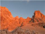 Sledilo je (vsaj za težjo skupino) zgodnje vstajanje ter ob 5 štart proti Civetti. Malo po 6 uri smo pred vstopom v ferato ob čudovitem pogledu na sončni vzhod pozajtrkovali. No, nekateri, ki so vstali že kmalu po 4 uri so imeli zajtrk že na koči.