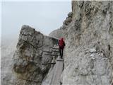 To niti ni prava ferata, je bolj vojaška povezava iz prve vojne po grebenu visoko nad dolino. Vklesana v pobočja, marsikje močno izpostavljena in z enosmerno vozovnico, marsikje hudo pošodrana. Tudi jeklenic je veliko, še precej več kot jih imam v spominu, a to ne spremeni značaja te poti. Izjemno dolga, zahtevna in hkrati čudovita