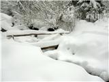 ...Saj ni res pa je, bi lahko rekli. Rožice pod debelo snežno odejo. Tudi več kot 30 cm na nekaterih odprtih delih poti. Spodaj pa snežna brozga. Uspelo nama je samo do mostičkov, jutri pa naprej