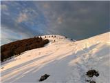 . Je prišel nasproti en pohodnik brez palic in derez in povedal, da je tokrat ostal brez vrha, saj se mu je zdelo tako prenevarno. Potarnal je tudi o vetru in mrazu na vrhu. To me pa pretirano ni skrbelo, saj smo že vsega vajeni.