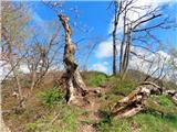 Nadaljujemo po lepem grebenu proti drugi ciljni točki ( Tolsti vrh 834m ). Markacije so tako…? Tam kjer je potrebno kam skreniti, jih mi nismo opazili. Sicer smo se itak znašli, samo čudno ali jih nismo opazili ali jih na ključnih mestih ni…? Nekaj časa jim sledimo, jih izgubimo, gremo po svoje…Tolsti vrh se tako lepo vidi, da ni problema, da bi ne našli gor. Malo pred vrhom prilezemo po strmem travniku na markirano, ki pelje od Svetine. Na Celjski koči se ne ustavimo. Hitimo nabirat čemaž, ki ga je v izobilju pred vstopom v Hudičev graben. Naberemo ga precej!