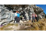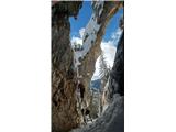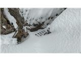 Grapo na Lopno peč smo zmogli brez problemov. Potrebno je bilo le malo več zbranosti zaradi vlažne skale in tal. Tudi nekaj novega vejevja je v grapi, ki pa pri vzpenjanju ne dela težav. Varovala so vsa ok.