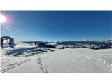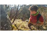 Med postankom pri Treh plotih smo se okrepčali z dobrotami iz rukzakov in nato nadaljevali proti mojemu bivaku pod Javorco. Kot sem predvideval je pri Mozirski koči postalo topleje in tudi veter je pojenjal. Škoda, da nisem imel s sabo noža, da bi nabral regrat, ki ga je tam povsod dosti.