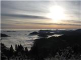 Danes je bil pretežno sončen in ne prehudo vetroven dan na Ratitovcu, obiskovalcev veliko, kot običajno ob lepih koncih tedna. Na Ratitovec sva z možem odšla po poti čez Povden ("leva pot"), nameravala sva se vračati čez Razor, vendar sva si premislila, ko sva se ob Krekovi koči pogovarjala z nekaterimi planinci, ki so se vzpeli čez Razor. Povedali so, da je na tej poti še kar precej splazenega snega, nižje, v gozdu pa je mestoma zelo blatna. Nekaj zaplat snega je tudi na več mestih na vrhu in okrog koče, vendar ga bo ob takem vremenu, kot je bil danes, zagotovo v nekaj dneh pobralo.