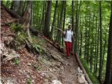 From the parking lot, continue along the road along which you parked. The road runs out after a few minutes, and we continue along the footpath without any major ascents or descents. The path, which crosses a large number of ravines, then joins the path from Kamniška Bistrica (lower starting point). Here we should be careful when descending to follow the path we came on. The well-marked and relatively steep path, which climbs through the forest for some time, leads us higher up to a pleasant little spring (which dries up in dry periods). From the little spring there is a short climb and the path leads us to the well-known resting place Pri Pastirjih, where there is an emergency bivouac.
