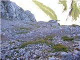 Geppo: Rad bi se izognil vzponu na K.sedlo. Preden se gre v steno (plezalna na K.sedlo) bi nadaljeval gor po melišču na Kotliče. Ampak ne vem, kje zaviti gor (če se sploh da) za sod brez dna. Ne bi rad pešačil nazaj do vstopa nazaj. To se mislil.