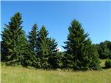 b) From the Bloža plateau, drive to Ravne na Blokah, then drive through Kračali and Janeži. You pass the settlement of Križeti on the left and then join the main road leading from Sodražica towards Hrib-Loški Potok. Follow the road to the right, then just a little further on at the first crossroads continue left towards Travna Gora. Park in a suitable place along the road, preferably on a wider shoulder.