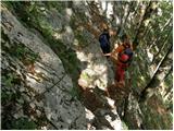 From the parking lot at the cargo cableway, continue along the deteriorating road, which turns into cart track after 10 minutes of walking. Cart track splits into two parts, and we take the right one (the left cart track is lost, or leads towards Gams' Hide), which turns slightly further to the right at a small boulder covered with moss (a large rock). It is at this point that cart track is abandoned and you continue straight on the initially less visible path, which later climbs steeply in the keys. The steep and, especially in wet conditions, slippery path leads over steep slopes, which in some places are protected by a steel cable. The steep path, which also crosses some ravines, leads us higher up to a less steep slope. After a good hour's walk, the path leads us out of the forest, where it starts to climb steeply again. The path initially leads us over grassy slopes surrounded by sparse forest, and then, with the help of a few fixed safety gear, it takes us a step higher. The path then moves on to a rough slope, which makes the ascent a little more difficult, and then turns left onto a steep grassy slope rising above vast scree fields. At the top of this grassy section, turn slightly right and the path moves from the grass to the high mountain area of high-lying plateau below Skuta. Continue along the cairns path and in a few minutes you will reach the pleasant bivouac below Skuta.