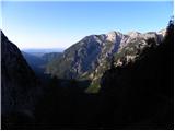 From the bivouac, continue along the poorly visible and still unmarked path along the unmarked ridge, which leads us after a 15-minute walk from the bivouac to the marked path Kamniško sedlo - Kokrsko sedlo. Here we continue to the right and after a few minutes we arrive at a crossroads where we continue sharp left in the direction of Skute and Rink. Only a little further on we come to the next crossroads, where we continue right up towards Rink (straight Skuta). The way forward climbs steeply for a short time, and then leads us to an undistinguished ridge along and along which we then climb. Just before the marked path reaches the Mala Rinka peak, it turns slightly to the left and descends slightly to the notch between the Mala and the Štajerská Rinka. On the other side of the stubble, the marked path starts climbing again and after a few minutes of further walking leads to a marked crossroads, where we continue straight in the direction of Kranjska Rinka (to the right Koroška Rinka). The trail then crosses the slopes of Koroška Rinka and then turns slightly to the left, where it climbs steeply. There is a short, very steep climb, and then the path leads to the main ridge, which is followed in a few steps to the top of the Kranjska Rinka. In Konec - bivouac under Skuto 3:00, bivouac under Skuto - Kranjska Rinka 1:35.