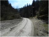 a) First drive to Škofja Loka, then continue to Železniki and on to Zale Log. About 100 m before Zali Log, you will come to a crossroads where the road to Davča branches off to the left. Turn left here, cross the bridge over the Selška Sora River and park in a suitable space next to the transformer.