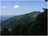 Follow the track in the direction of Koprivnik (right down Žetina), which gradually starts to climb steeply. At the point where the track starts to become overgrown with tall grass, you will see on the right-hand side an initially less visible, but marked path, which branches off to the right with cart track. Next, we climb through the initially very dense forest, along a path which leads us higher up on partly scenic slopes, from which we have a view of the nearby Blegoš. A little further on, the steepness eases and the path quickly leads us over a blueberry patch to the top of Koprivnik.