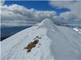 Begunjščica is a mountain range in Karawanks east of Stol. The highest peak is Veliki vrh, which at over 2000m offers a beautiful view of central Slovenia. Some also call Begunjščica the mountain of the hundred ravines, as it is interspersed with them. The summit, which is part of the SPP, also has a viewing platform and a registration box. Otherwise, the summit is grassy and vast, but precipitous on the north side.