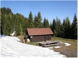 Saddle Rekaršica (marked Rekaršca on the Kranjska Gora map) is located between Jerebikovec (1621 m) and Kamnati vrh (1658 m). On the Austrian side of the saddle there is a small shepherd's hut and a nice bench with a table.