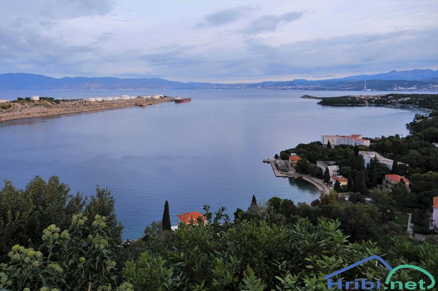 Pogled na turistični del Omišlja z razgledne točke pri cerkvi Sv. Antona