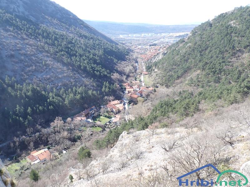Zaključek doline Glinščice v Gornjem koncu, pogled z vzpona na Muhov grad