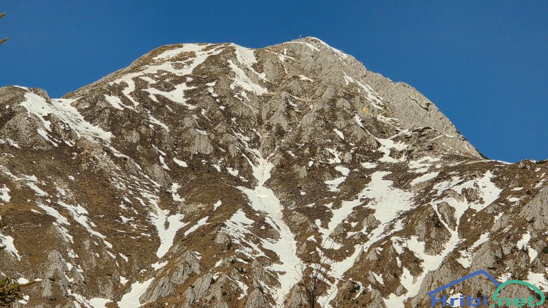 Bližnji Storžič je bolj siv in zelen, kot bel.