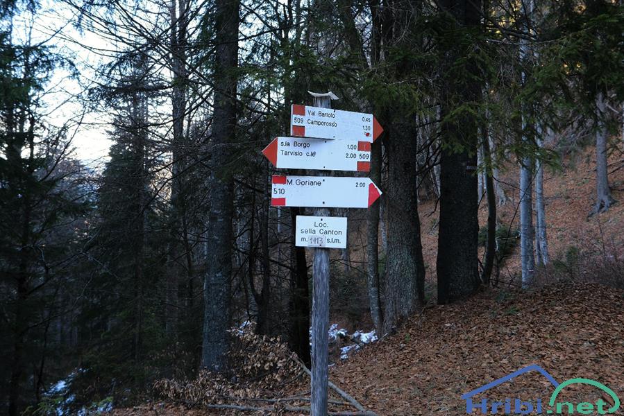 Prva oznaka za Monte Goriane, le da je Ĩasovnica precej narobe. Sedaj slediva 510