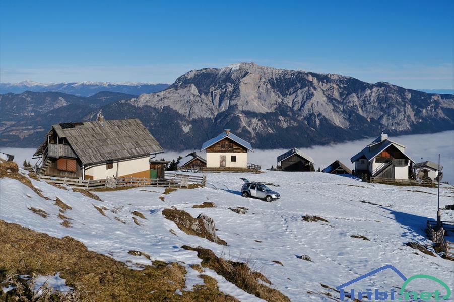 Planina Göriacher Alm, oziroma Malga Goriane. Po sredini jo deli meja med Avstrijo in Italijo