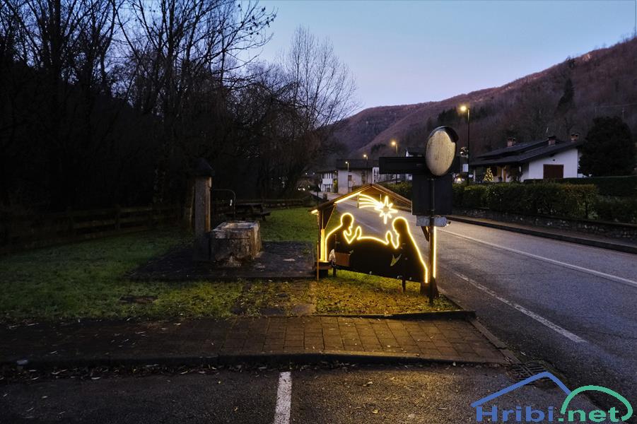 Parkirava v Sovodnji, po domače Sauodnji. Sveta družina razsvetljuje temo