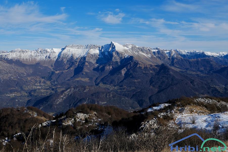 Južna stran Julijcev. Snega ni veliko, je pa zagotovo trd in poledenel