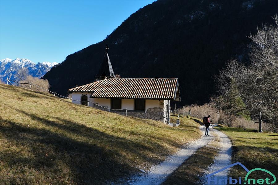 Proti sedlu piha kot za stavo, zato je edini prostor za malico ob zidovih cerkvice