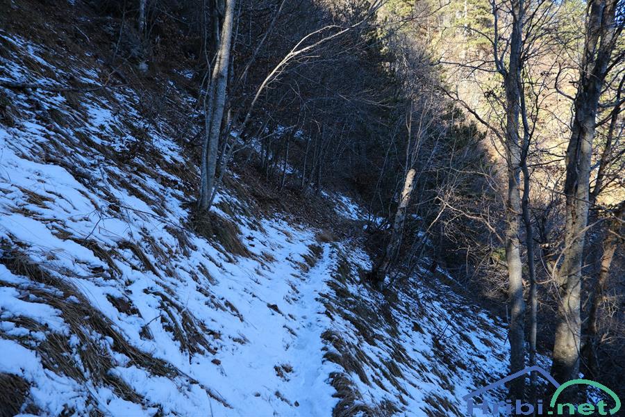 Tole me je skrbelo. Strma 421 je ponekod tako izpostavljena, da bi preveč snega oviralo sestop, če ne celo preprečilo