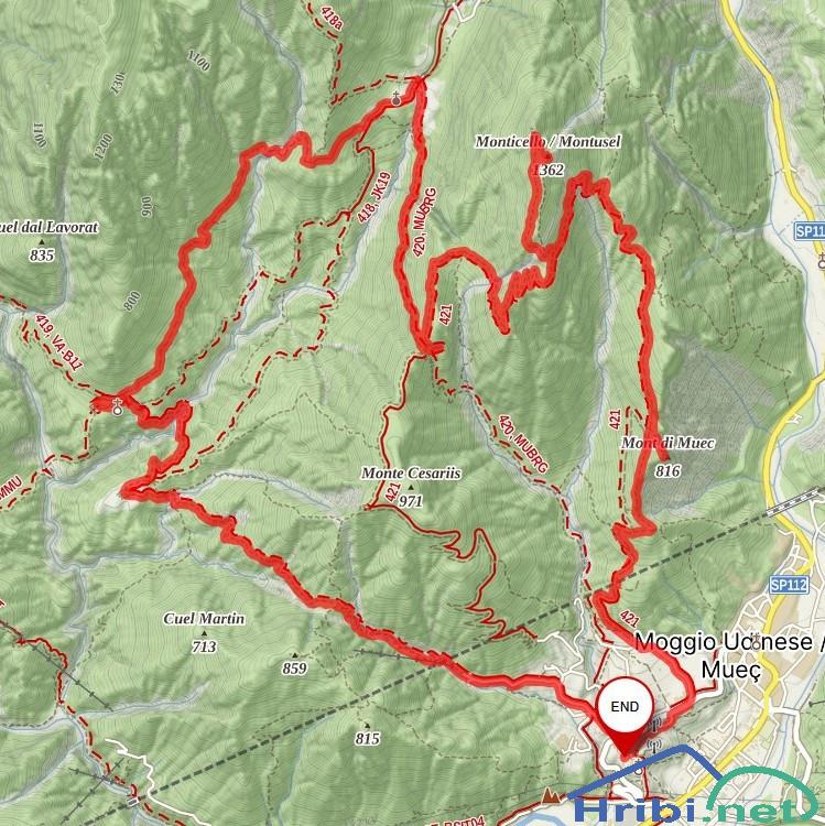 GPS sled. Nabralo se je 24 km in 1500 višincev
