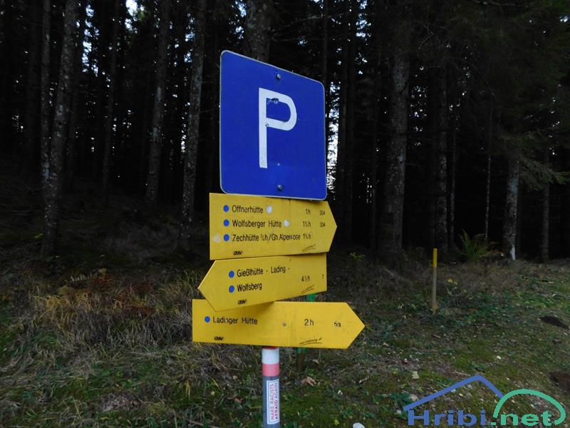 Parkirišče nekoliko naprej od gostišča Alpengasthof Gießlhütte.