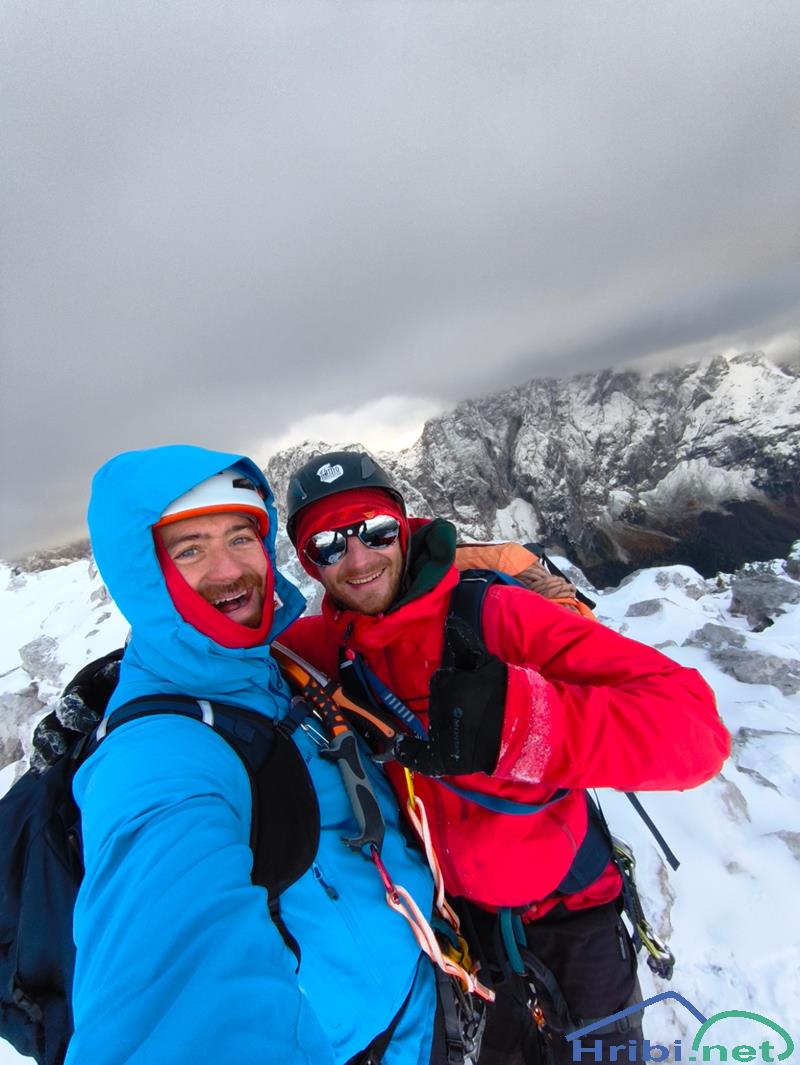 Midva na vrhu Visoke Ponce (2274 m). Ogromna sreča po uspešno preplezanem Severnem grebenu v zelo zahtevnih razmerah.