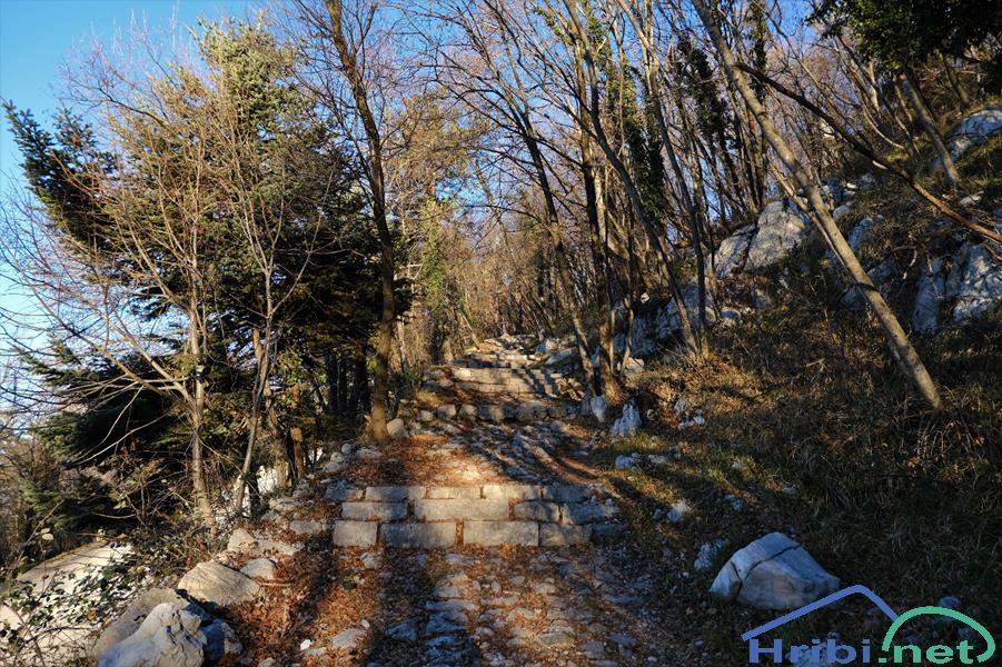 Takoj čez glavno cesto se prične zaključni vzpon po številnih stopnicah