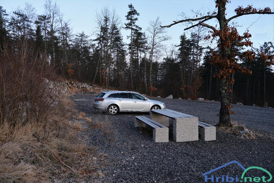 Parkirava pred vasjo Skadanščina na urejenem parkirišču. V vas nima smisla riniti, ker jo to čisto blizu