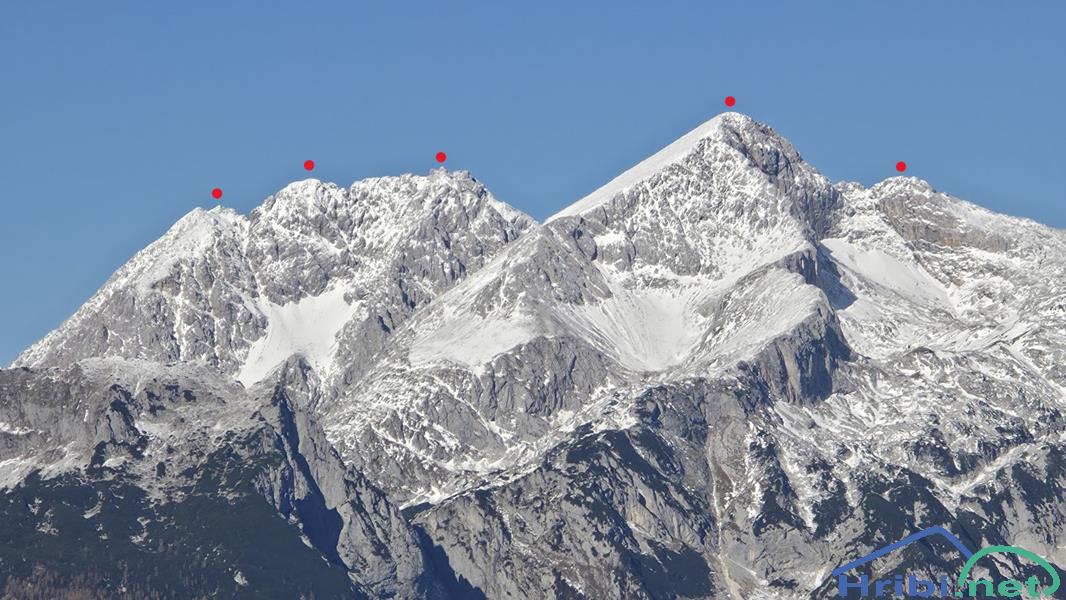 Na Križu 2484, Kokrska Kočna 2520, Jezerska K. 2540, Grintovec 2558 in Mali Grintovec 2447m.
