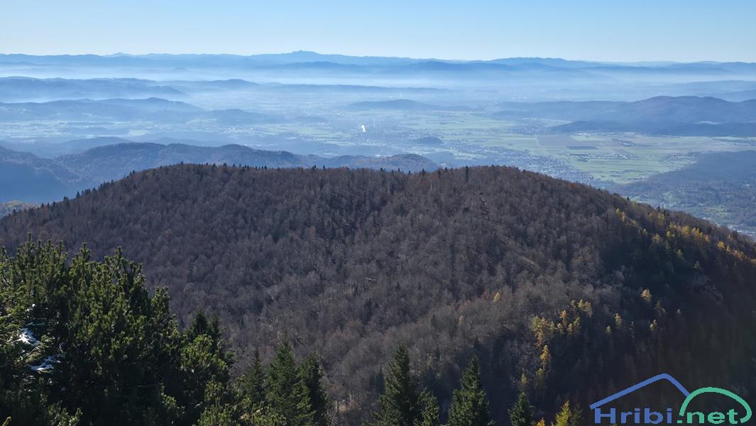 ...in jugu čisto nebo. Spredaj Pirčev vrh 1373m