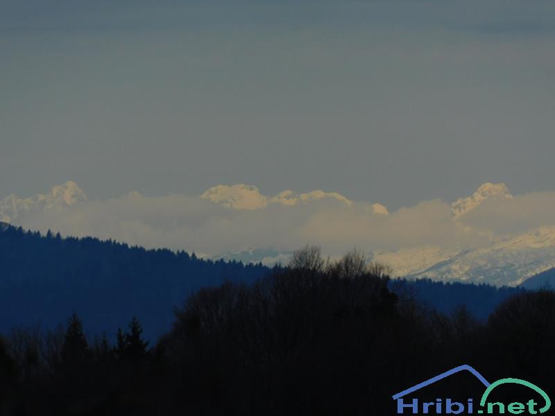 Pogled na zasnežene Kamniško Savinjske Alpe.