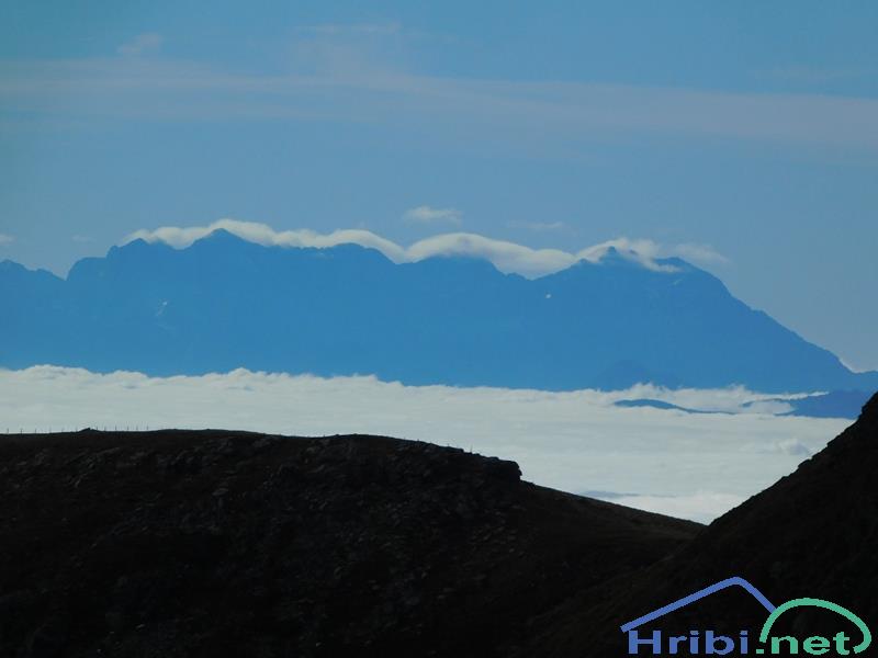 Vrhovi Kamniško Savinjskih Alp so v oblakih.