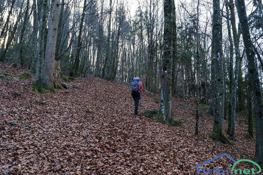 Proti Lavričevi koči spet grizeva strmino po blatnem bregu