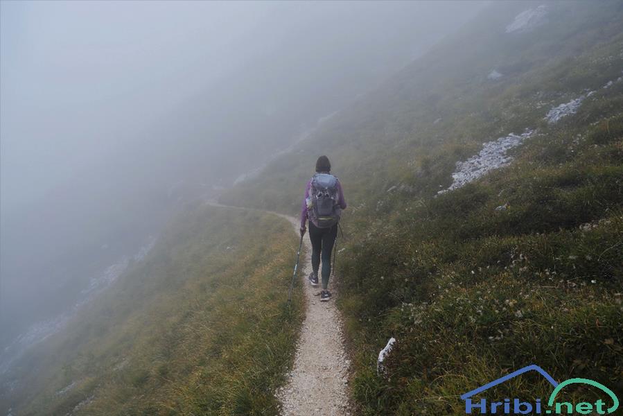 Ne pomaga. Brez razgledov se odpraviva nazaj po isti poti