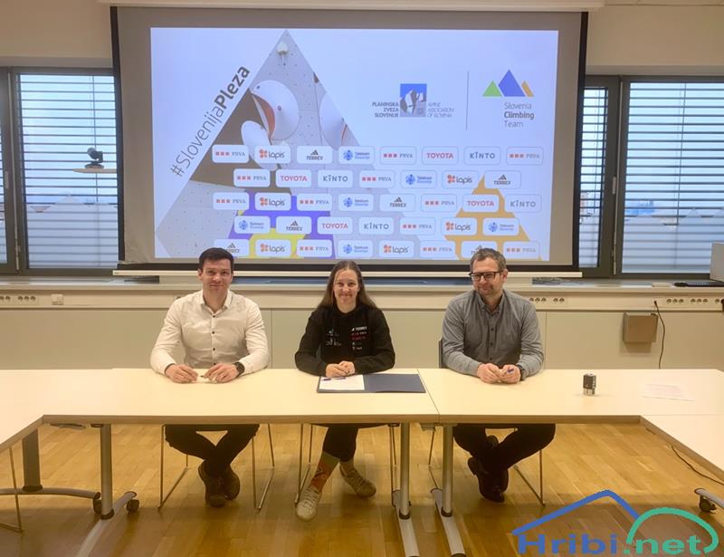 Načelnik Komisije za športno plezanje Marko Pogačar, selektorica mladinske reprezentance Ajda Remškar in generalni sekretar PZS Damjan Omerzu (foto arhiv PZS)