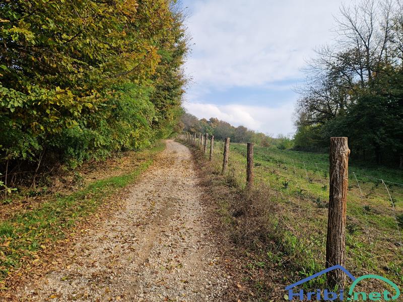 Cesta vodi mimo ograjene njive.