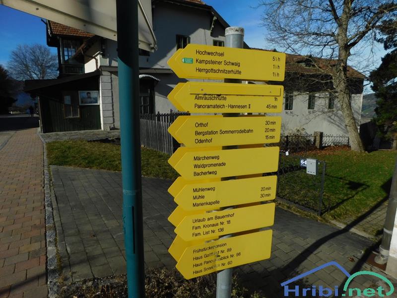 Pri cerkvi gremo levo za oznakami Hochwechsel.